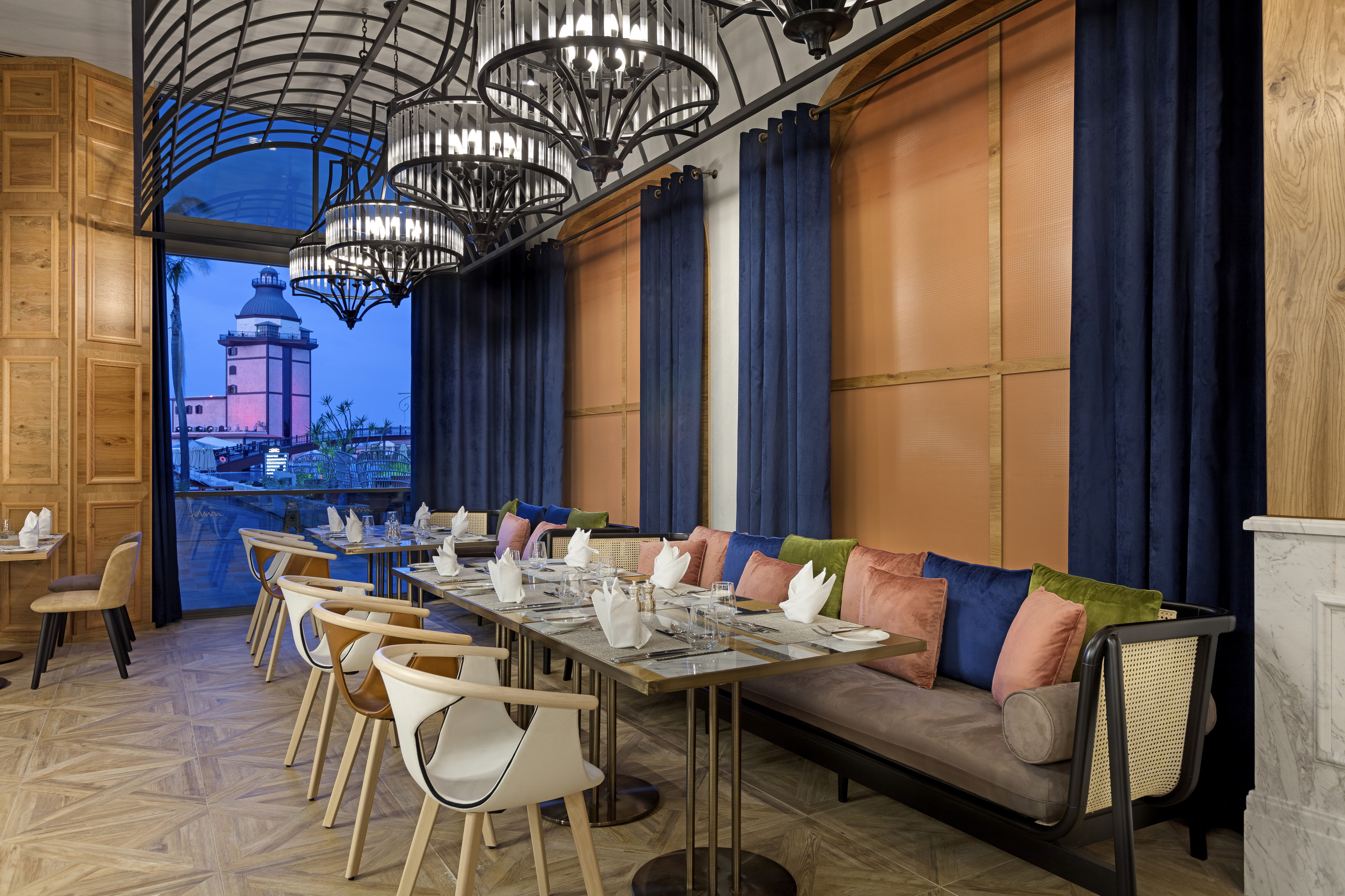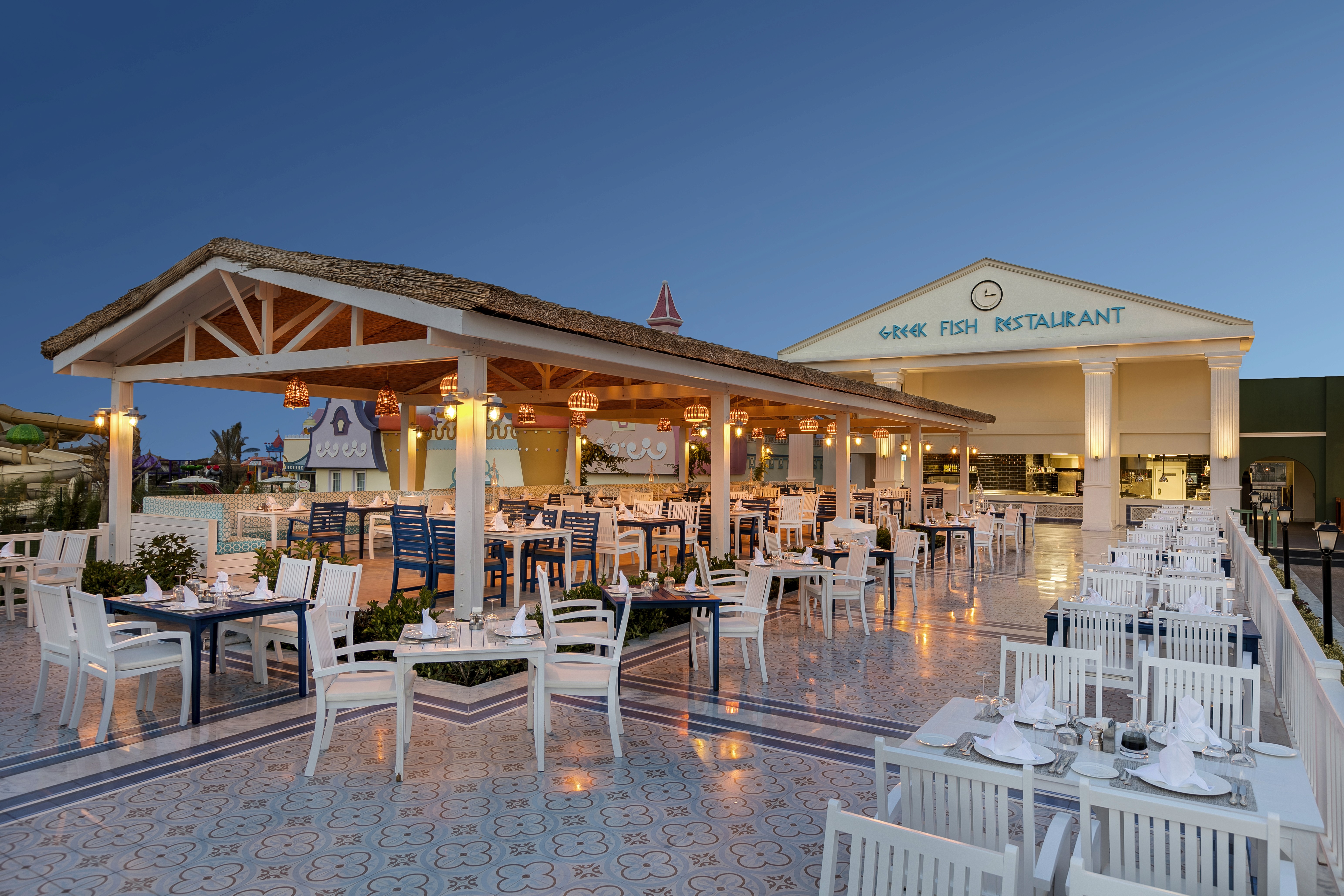 Refined seafood dining by the pool. A serene evening experience inspired by the Mediterranean.